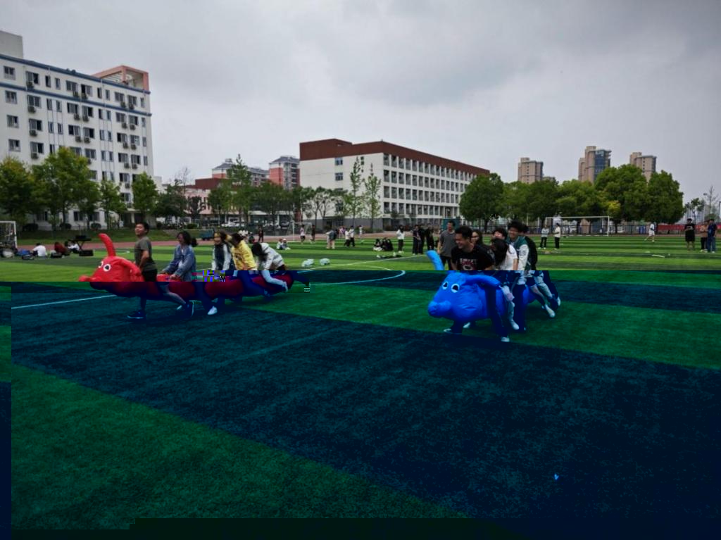 哨聲響起,兩人三足和毛毛蟲競速的場地上,選手們齊心協力向終點前進,目光所及皆是矯健的步伐,場地旁同學們大聲呐喊、加油助威,操場上一片歡聲笑語。